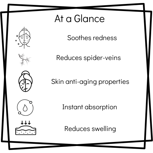 Η Carnaby Beauty & Health – Κρέμα κατά των Ευρυαγγειών και Ερυθροτήτων έχει πρωτοποριακή σύνθεση με το μοναδικό φυτικό συστατικό Legance, το οποίο προστατεύει, καταπραΰνει και απαλύνει τις κοκκινίλες. Καλύπτει την ερυθρότητα των τριχοειδών αγγείων, βελτιώνοντας ουσιαστικά την καλή εμφάνιση του δέρματος. Ενυδατώνει και χαρίζει ομοιομορφία παράλληλα με το να αναδεικνύει τη λάμψη της επιδερμίδας. Συνιστάται ιδιαίτερα σε δέρματα με ευρυαγγείες και άλλες χρωματικές αλλοιώσεις. Προσφέρει μία ολοκληρωμένη διαχείριση της ερυθρότητας χάρη στα φυσικά δραστικά συστατικά από τζίντζερ & ιπποκάστανο, ενώ ταυτόχρονα παρέχει και αντιοξειδωτική δράση.